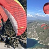 Fethiye'de eğitim gören üniversite öğrencileri, Cumhuriyet'in 100. yılı dolayısıyla Türk Bayraklarıyla yamaç paraşütü uçuşu gerçekleştirdi.