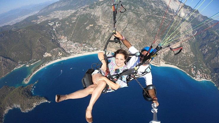 Tatil için dünyaca ünlü Ölüdeniz'i seçen Avusturyalı aktris Elizahabeth Lanz yamaç paraşütü ile uçtu.
