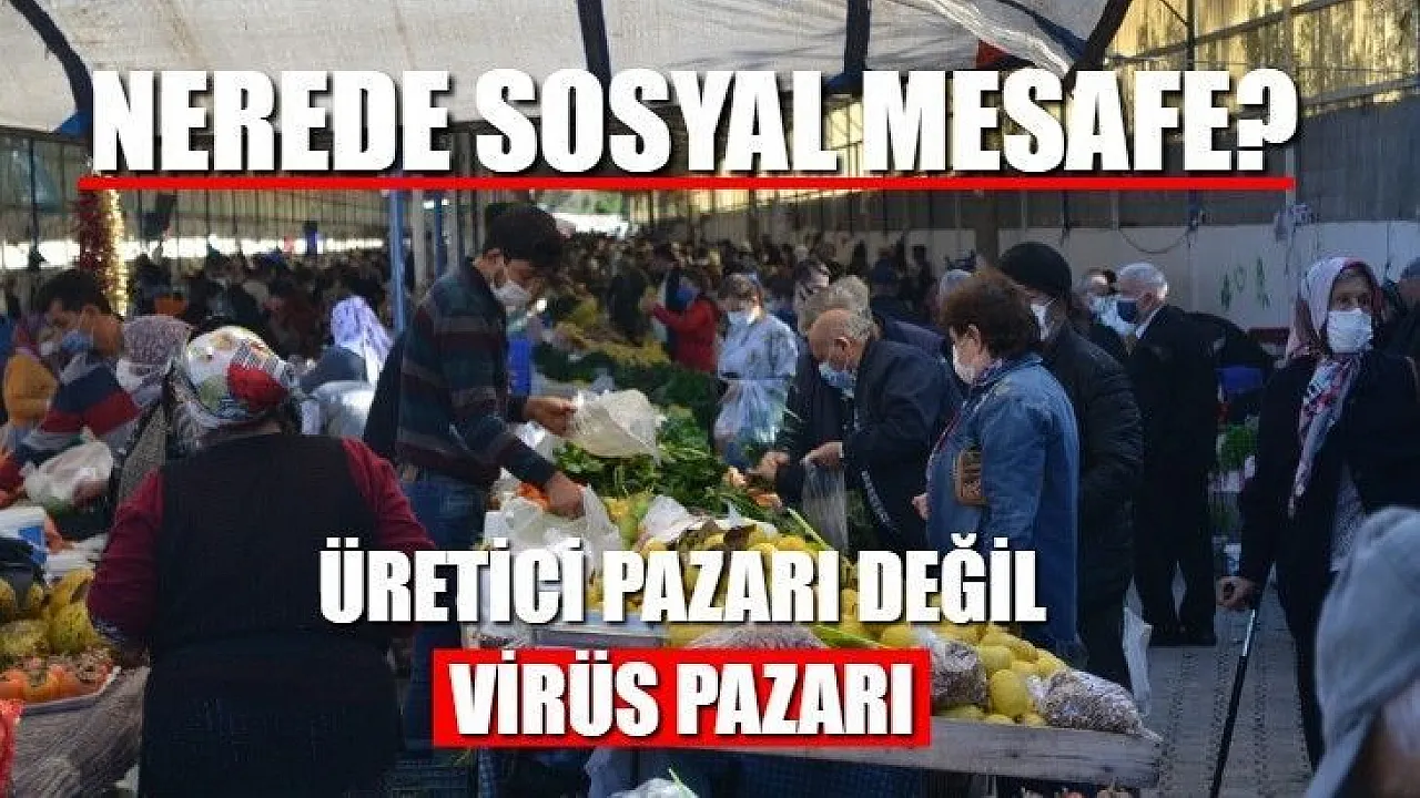 Fethiye'de Cuma günleri kurulan üretici pazarına hafta sonu yasağı öncesi vatandaşlar akın edince sosyal mesafe unutuldu. Pazarda zabıta görevlilerinin sık sık yaptığı maske ve sosyal mesafe uyarıları pek dinlenmezken, vatandaşlar saatlerce kaldıkları pazarlarda alışveriş telaşına düştü. Salgında Fethiye ve Muğla'da koronavirüs çemberi iyice daralırken, üretici pazarında bugün çektiğimiz fotoğraflar vaka sayısındaki artışa neden olan vurdumduymazlığı gözler önüne serdi. Bilim Kurulu üyelerinin ve uzmanların koronavirüs salgınında çemberin daraldığını açıklamalarına rağmen bu bile vatandaşları tedbirlere uymamaktan alıkoyamadı.