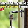 Uzmanlar, bugün başlayan 9 günlük Ramazan Bayramı tatiline çıkacak vatandaşları hem hırsızlıklara hem de yaşanabilecek muhtemel aksiliklere karşı uyarıyor.