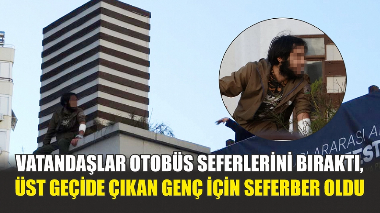 Vatandaşlar otobüs seferlerini bıraktı, üst geçide çıkan genç için seferber oldu