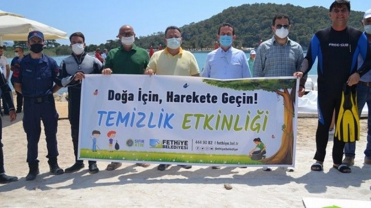 Dalgıç elbisesi giyen sertifika sahibi Fethiye Belediye Başkanı Alim Karaca, Dünya Çevre Haftası etkinlikleri kapsamında düzenlenen etkinlikte Ölüdeniz Lagünü'nde dalış yaparak, deniz dibi temizliğine katıldı.