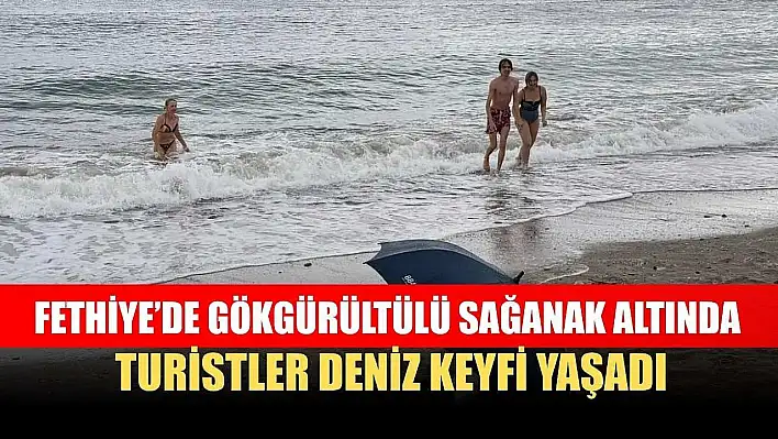 Fethiye'de sabah saatlerinden itibaren etkili olan gök gürültülü sağanak yağışa rağmen, Çalış Plajı'nda tatil yapan yabancı turistler yağmura aldırış etmeden denize girdi.