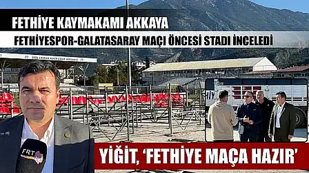 Fethiye Kaymakamı Fatih Akkaya, Ziraat Türkiye Kupası'nda oynanacak Fethiyespor-Galatasaray maçı öncesi Fethiye Şehir Stadı'nda devam eden portatif tribün çalışmalarını yerinde inceledi.