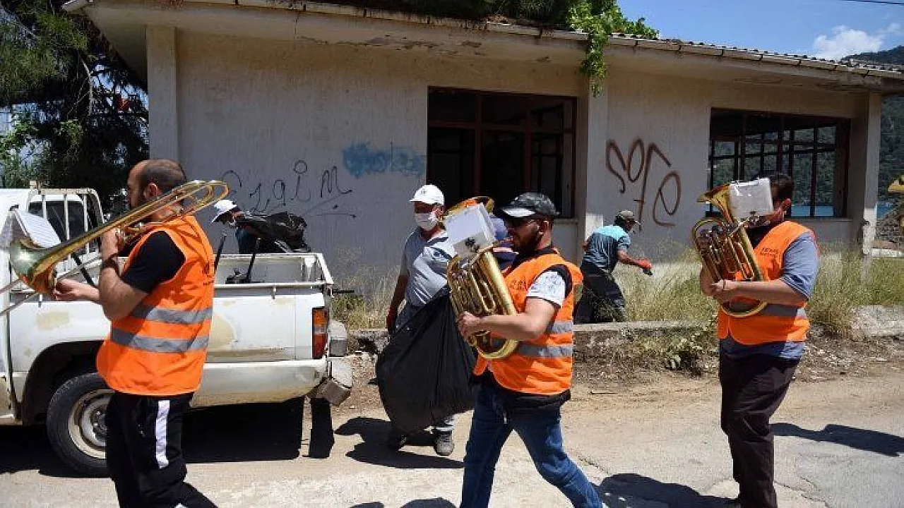 Muğla'nın Fethiye ilçesindeki Fethiye Yarımadasında vatandaşlar tarafından atılan çöplerin kirliliğe neden olduğu bölgelerde kıyı temizliği yapıldı. Fethiye Belediyesi temizlik ekiplerinin çalışmasına Fethiye Belediye Bandosu da 'Çöpçüler' şarkısıyla eşlik etti.