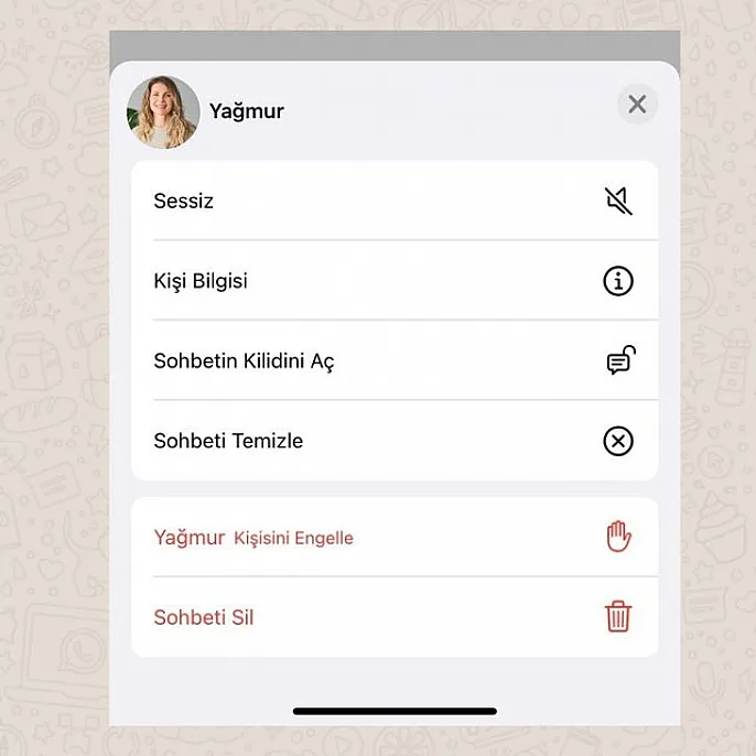 Karşınıza altında ''Diğer'' yazan üç nokta çıkacak, buna tıklamalısınız. Bununla birlikte Android işletim sistemli olanlarda ise kişinin üzerine basılı tutmalısınız, daha sonra sağ en üstte üç nokta gözükecek, ona tıklamalısınız.(Bu aşamadan sonrası tüm telefonlarda aynı ilerliyor.) Çıkan kişi bilgilerinde ''Kişi bilgisi''nin altında ''Sohbeti Kilitle'' yazısına tıklayın.