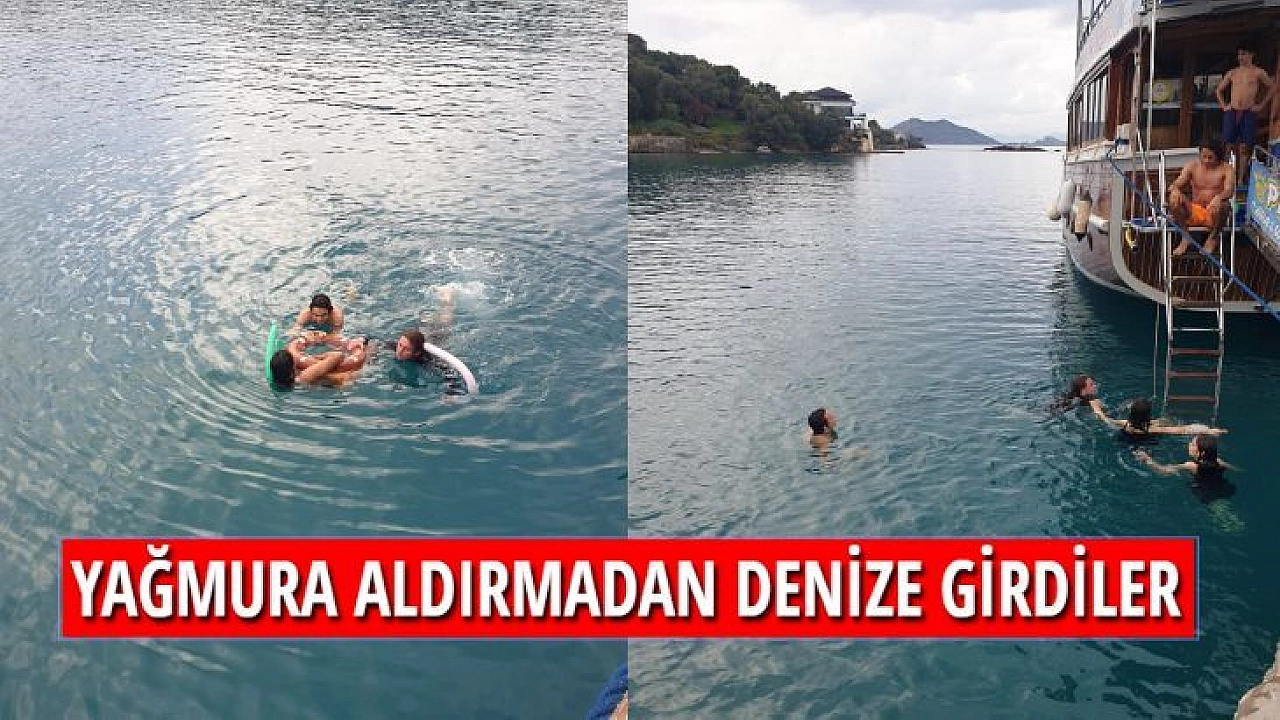 Fethiye’ye hafta sonu tatiline gelen Fen Lisesi Öğrencileri’ni ne yağmur ne de soğuk denize girmelerine engel olabildi. Konya’dan Fethiye’ye hafta sonu tatili için gelen 90 Meram Fen Lisesi Öğrencisi yağmura ve soğuğa aldırış etmeden denize girdi. Sabah Prenses Serap isimli tekne ile Fethiye Körfezi’ni gezmek için tura çıkan öğrenciler her durdukları molada mayolarını giyip tekneden atlayarak denize girdiler.