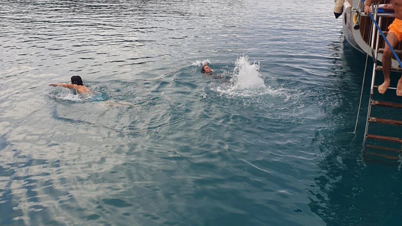 Hafta sonu tatili için Fethiye'ye gelen Konya Meram Fen Lisesi öğrencileri Fethiye Körfesi'ni gezmek için tekne turuna çıktılar. Yağmura ve soğuğa aldırmayan öğrenciler tekne turunda denize girip eğlendiler.