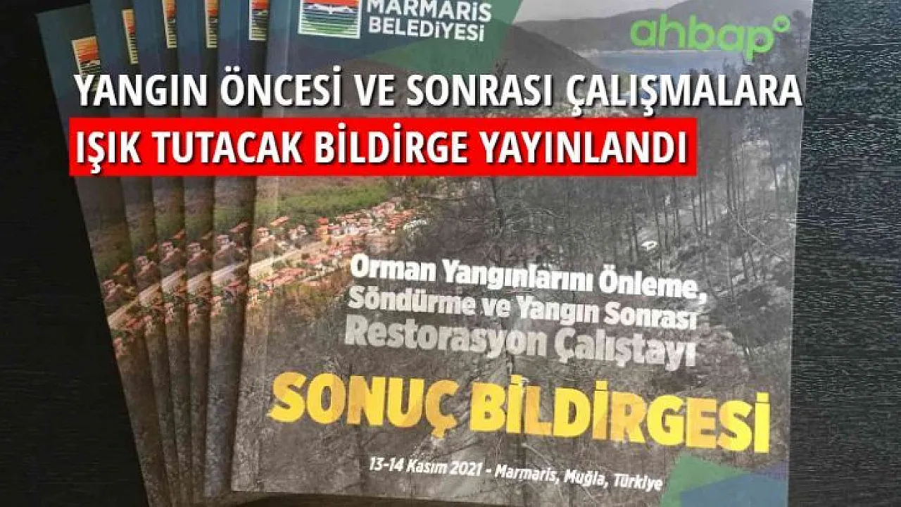 2021 yılında Marmaris’i derinden sarsan büyük orman yangını sonrasında Marmaris Belediyesi ve Ahbap Derneği tarafından üniversitelerin, ilgili kamu kurumlarının ve sivil toplum kuruluşlarının katılımıyla Orman Yangınlarını Önleme, Söndürme ve Yangın Sonrası Restorasyon Çalıştayı düzenlenmişti. 13-14 Kasım 2021 tarihinde gerçekleştirilen çalıştayın sonuç bildirgesi Marmaris Belediyesi tarafından bir kitapçık haline getirildi.