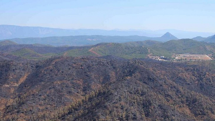 Muğla'nın Marmaris ilçesi Bördübet mevkii Yediadalar bölgesinde 21 Haziran akşam saatlerinde çıkan ve 25 Haziran'da tamamen kontrol altına alınarak soğutma çalışmaları yapılan alanlar helikopterden görüntülendi.