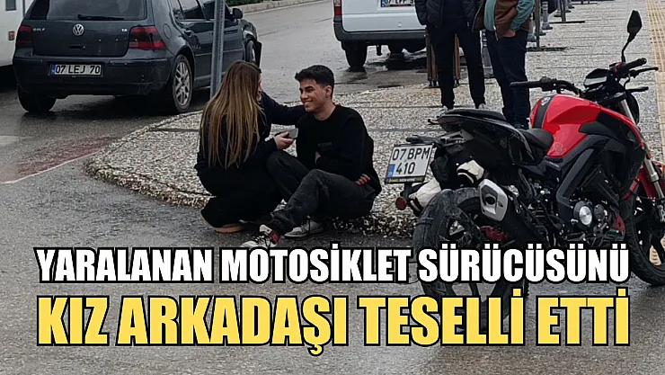 Yaralanan motosiklet sürücüsünü kız arkadaşı teselli etti