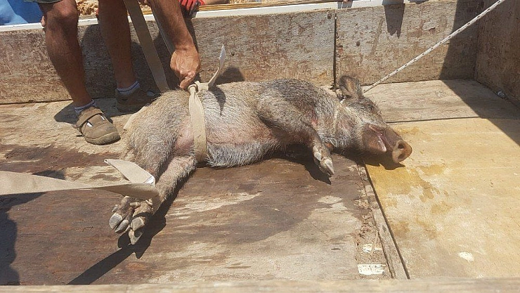 Bodrum’da ayağından yaralanıp hareket edemez halde olan bir domuzu vatandaşlar kendi imkanlarıyla veterinere götürdü.