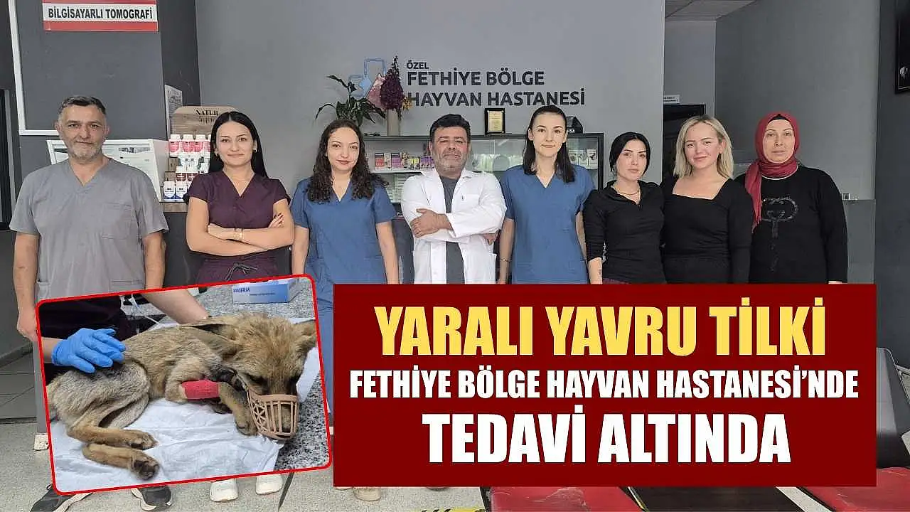 Yaralı yavru tilki, Fethiye Bölge Hayvan Hastanesi'nde tedavi altında