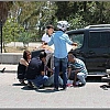 Fethiye'de iki motosiklet sürücüsünün karıştığı trafik kazasında kurye olduğu öğrenilen Hasan Varçın yaralandı. Kaza sonrası ambulans çağıran çevredeki vatandaşlar, aşırı sıcak ve güneş nedeniyle yerde yatan yaralının başının üstüne masa örtüsü tutarak güneşten korumaya çalıştılar.