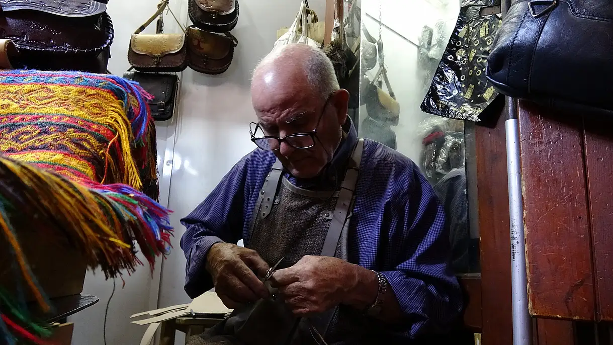 Yaşlı usta, 66 yıldır çanta üretiyor