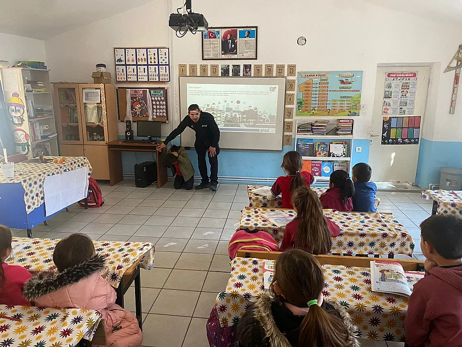 Muğla'nın Yatağan ilçesine bağlı Turgut İlköğretim Okulu'nda öğrencilere ve öğretmenlere yönelik afet farkındalık eğitimi düzenlendi. Eğitim kapsamında, doğal afetlere karşı hazırlıklı olunması, afet anında yapılması gerekenler ve alınacak önlemler hakkında bilgiler aktarıldı.