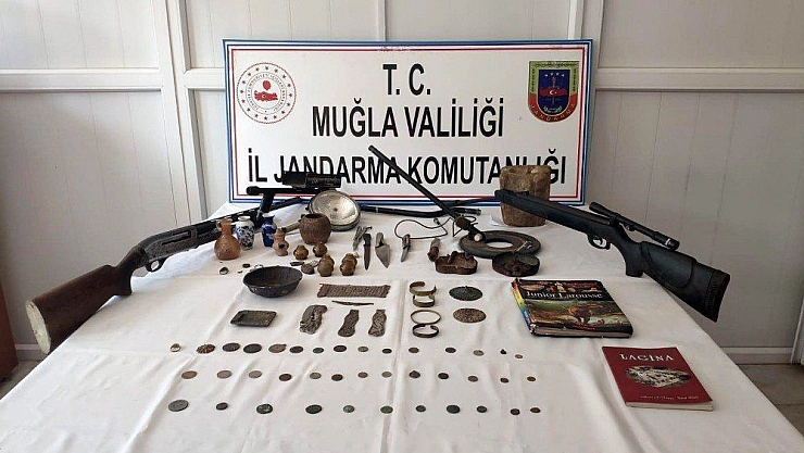 Muğla İl Jandarma Komutanlığı'na bağlı ekipler, Yatağan Konak Mahallesindeki bir işyerine gerçekleştirdiği operasyonda 52 parça tarihi eser ele geçirdi.