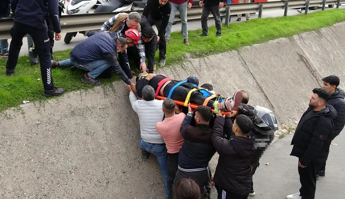 Antalya'da yayaya yol vermek için duran motosiklet sürücüsü arkadan gelen aracın çarpması sonucu savrularak kanala uçtu. Yaralı genci vatandaşlar ve itfaiye ekipleri yaklaşık 3 metrelik kanaldan çıkardı.