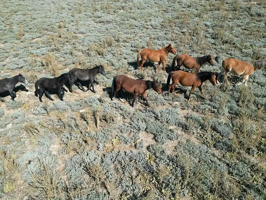 Yaylalardan köylere inmeye başlayan yılkı atları dron ile görüntülendi
