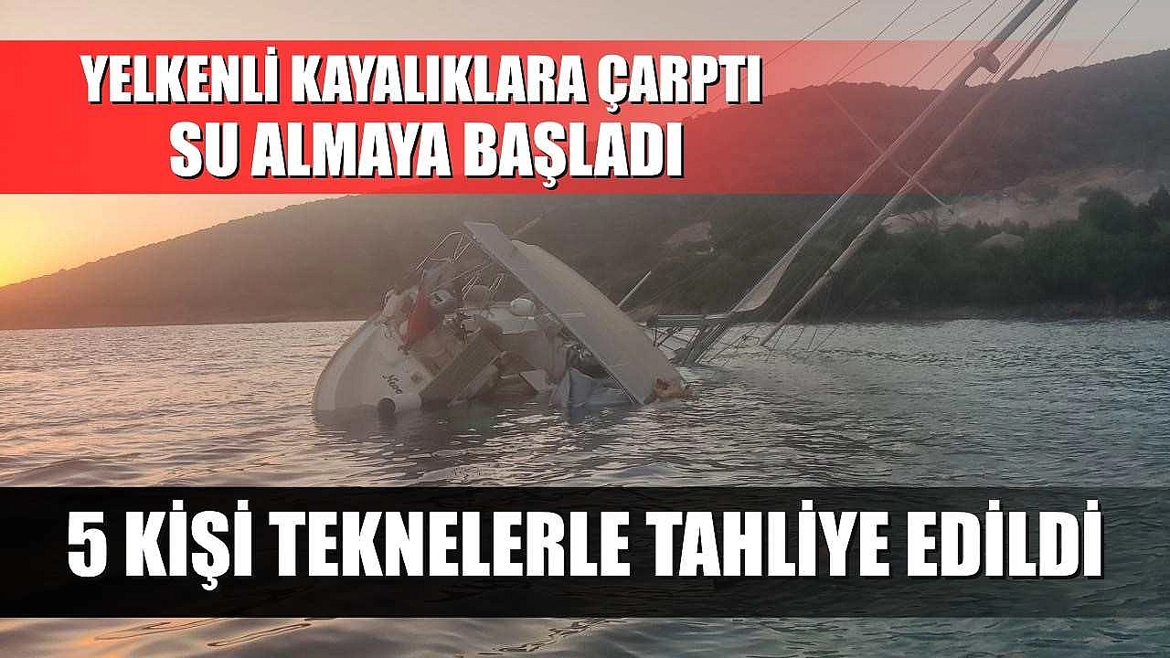 Yelkenli kayalıklara çarptı, su almaya başladı: 5 kişi teknelerle tahliye edildi