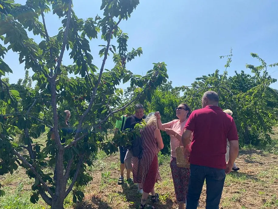 Türk sinemasının efsane ismi Perihan Savaş, yıllar sonra yeniden geldiği Tekirdağ'ın Şarköy ilçesine bağlı Kirazlı Mahallesi'nde geleneksel kıyafet giyip kiraz hasadına katıldı, dalından kiraz yedi.
