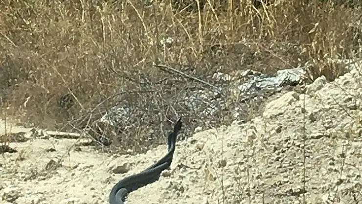 Milas’ın Kemikler Mahallesi yakınlarında aracıyla ilerleyen Kemal Sağıroğlu, yol kenarında iki yılanın birbirine kenetlendiğini görünce aracını durdurdu. Halk arasında ’Kara yılan’ olarak bilinen yılan türünü gören Sağıroğlu, dans eder gibi hareketlerde bulunan yılanı cep telefonuyla kayda aldı.