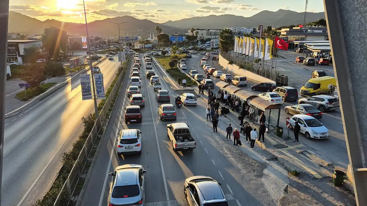 Yeni yıla Muğla'nın Bodrum ilçesinde girmek isteyenler, ilçede uzun araç kuyrukları oluşturdu.