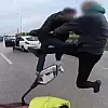 Bursa'da iki sürücü arasında 'yol verme' tartışması nedeniyle çıkan kavgada tarafların birbirine uçan tekmeyle saldırdığı anlar kameraya yansırken, görüntüler üzerine harekete geçen polis iki sürücüyü de gözaltına aldı. Sürücülerin ehliyetine el konuldu, idari ceza uygulanıp, psikotekniğe sevk edildi.