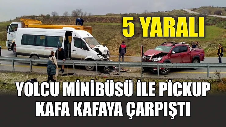 Sürücünün direksiyon hakimiyetini kaybettiği pickup aracın karşı yönden gelen yolcu minibüsüyle kafa kafaya çarpıştığı kazada 5 kişi yaralandı.