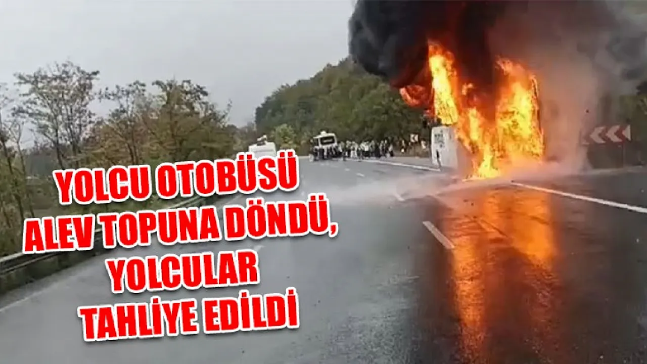 Yolcu otobüsü alev topuna döndü, yolcular tahliye edildi