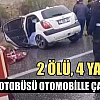 Yolcu otobüsü ile otomobilin çarpışması sonucu meydana gelen trafik kazasında otomobilde bulunan 2 kişi hayatını kaybetti, 4 kişi yaralandı.