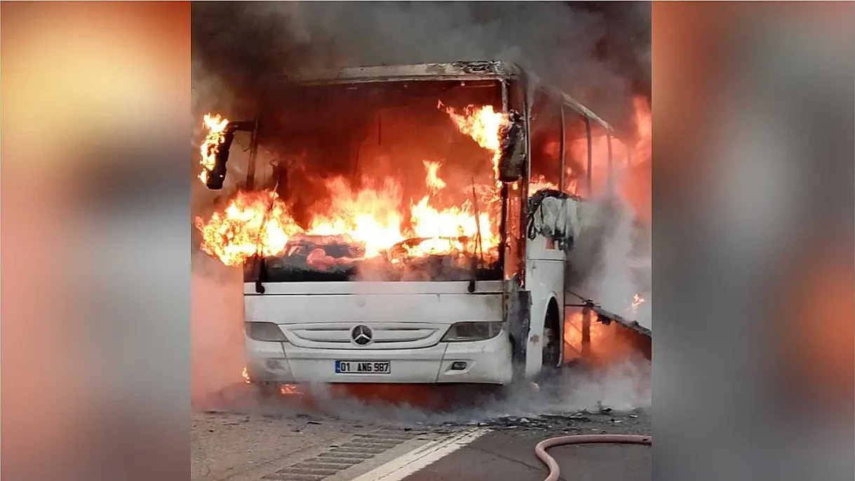 Samsun'dan Adana yönüne giden AS Adana firmasına ait S.S.'nin sürücülüğünü yaptığı Mercedes marka 01 ANG 987 plakalı yolcu otobüsü, Pozantı-Tarsus istikameti Damlama mevkiine geldiği sırada motor kısmından alev aldı.