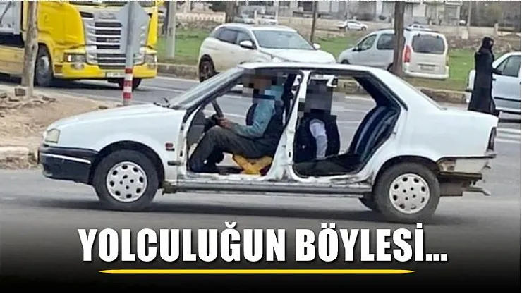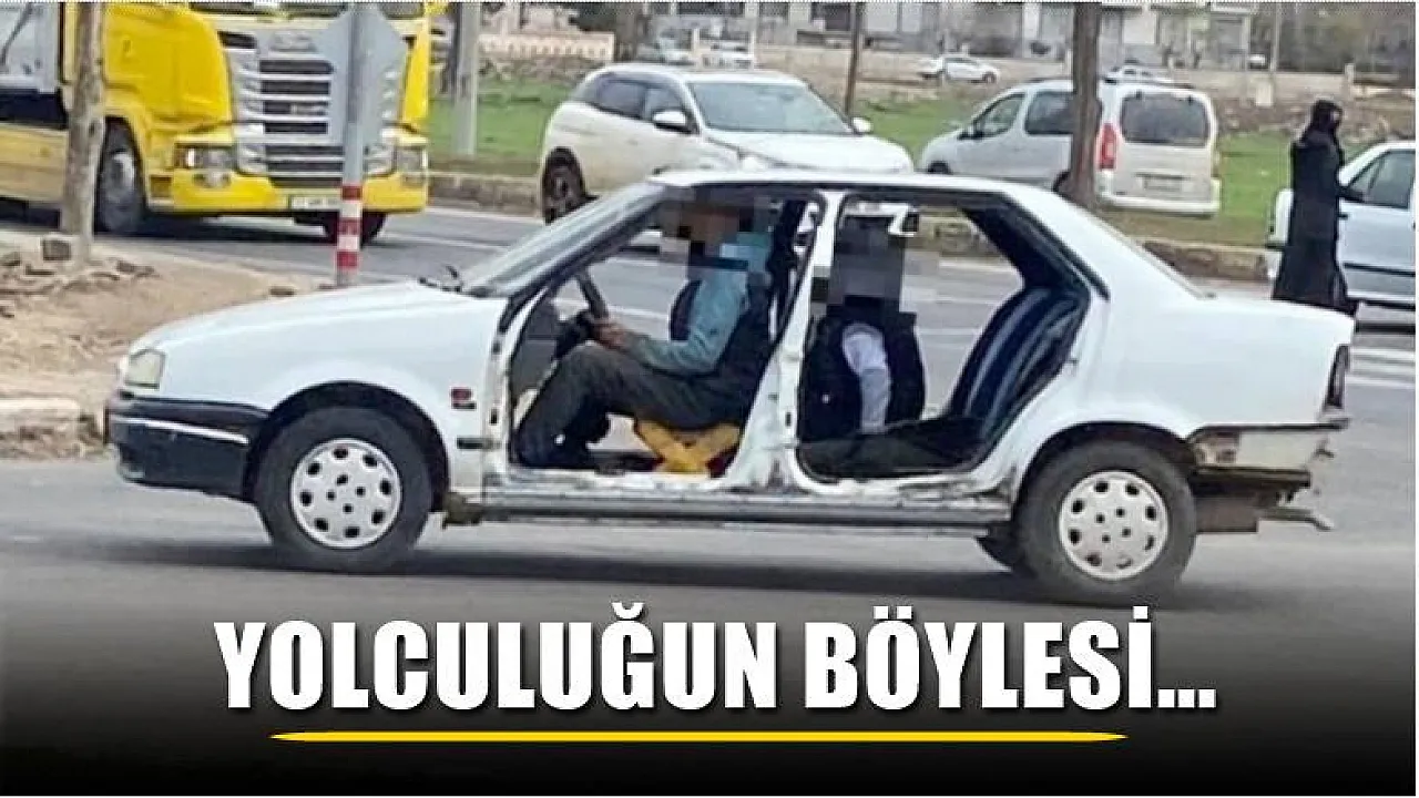 Şanlıurfa'nın Siverek ilçesinde kapıları ve şoför koltuğu olmayan otomobilde yolculuk hayretler içerisinde bıraktı. Kapısız yolculukta sürücü koltuk yerine iskemlede oturup hiçbir tehlikeye aldırış etmeden otomobili sürmeye devam etti.
