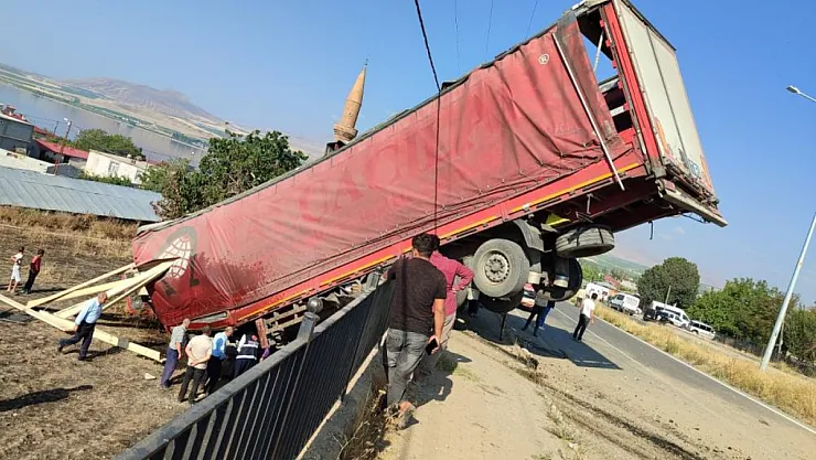 Kontrolden çıkan tır, bariyerlere çarparak bir evin bahçesine girerek durabildi.