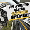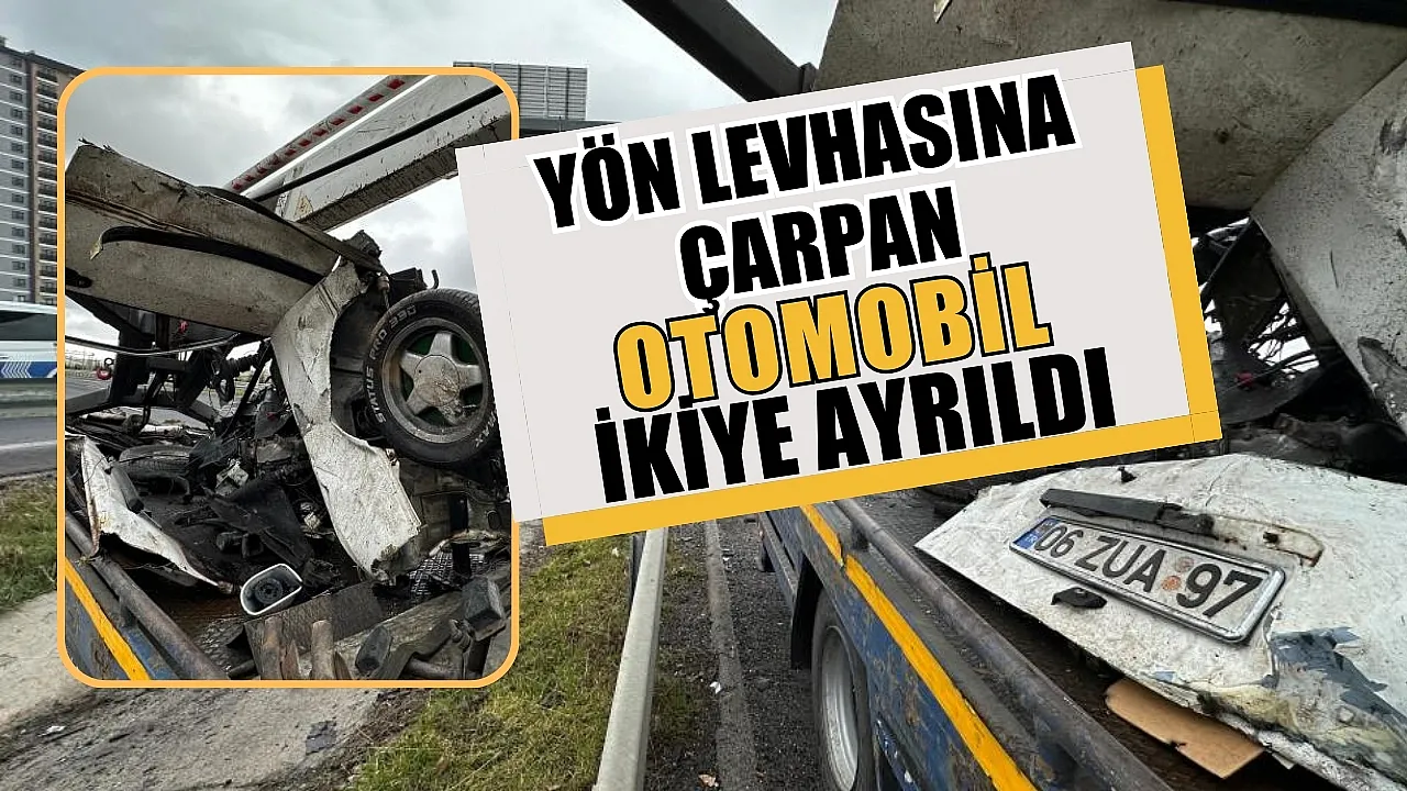 Yön levhasına çarpan otomobil ikiye ayrıldı