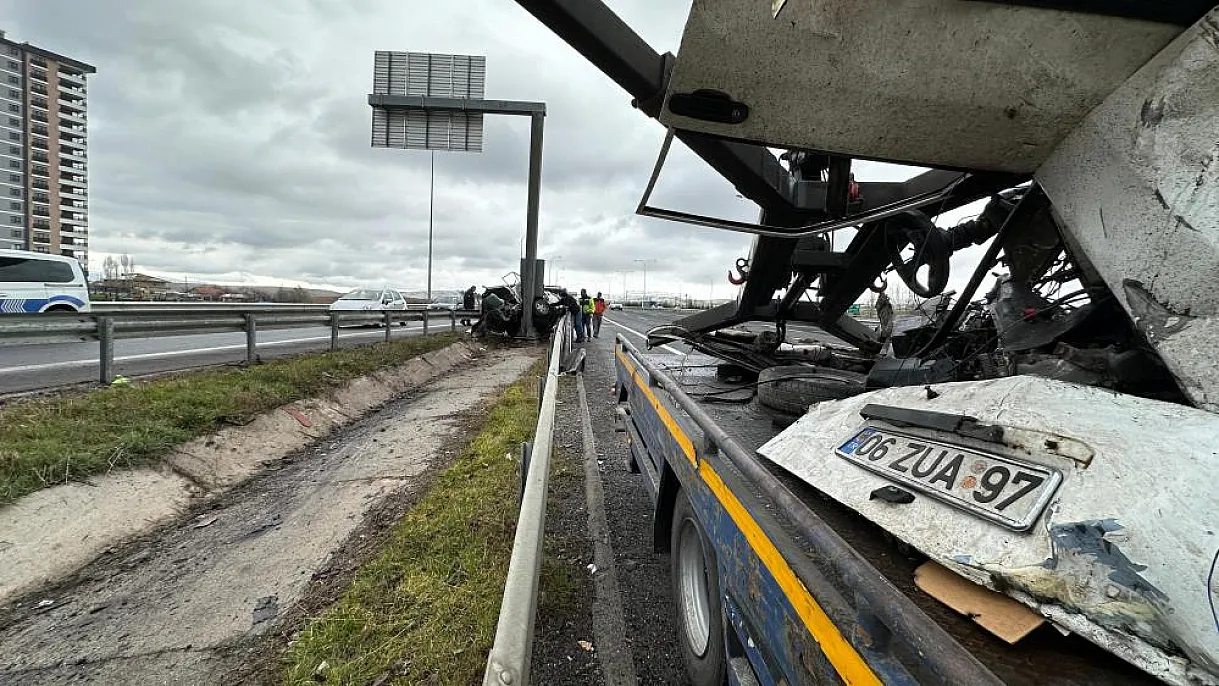 Ankara'da yön levhasına çarpan Tofaş marka otomobil ikiye ayrılırken, kazada sürücü ağır yaralandı.