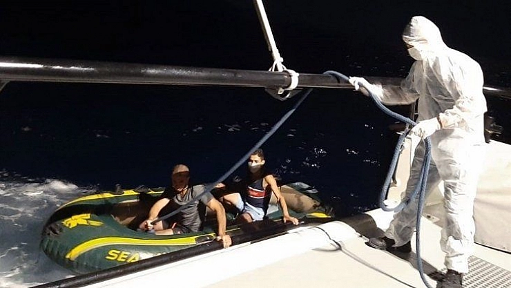 Sabah saatlerinde Muğla 112 Acil Çağrı Merkezi’ne yapılan ihbarda Bodrum Karaada açıklarında deniz üzerinde sürüklenen içinde iki düzensiz göçmenin bulunduğu lastik bot bulunduğu ihbarı yapıldı. İhbar üzerine bölgeye hareket eden Türk Sahil Güvenlik ekipleri, cep telefonları, paraları ve motoru sökülen lastik bot içinde iki düzensiz göçmeni Sahil Güvenlik botuna alarak kurtardı.