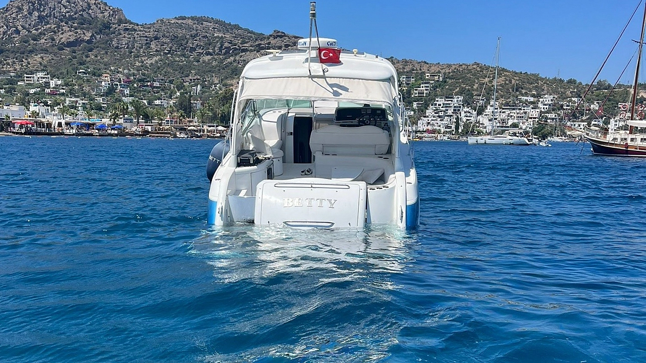Muğla'nın Bodrum ilçesinde sintine pompası arıza yapan 'Betty' isimli motoryat, yüzlerce kişinin şaşkın bakışları arasında sulara gömüldü.