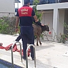 Gümüşlük Mahallesi Salkım Sokak’ta bulunan lüks bir sitenin yüzme havuzuna düşen buzağı, site sakinlerini şok etti. İçi su dolu yüzme havuzunun merdivenlerine de kafası sıkışan buzağıyı site sakinleri kurtarmak için seferber oldu. Buzağıyı havuzdan bir türlü çıkaramayan site sakinleri, durumu itfaiye ekiplerine haber verdi. Havuzun başına gelen ekipler önce buzağının kafasını havuz merdiveninden kurtardı. Boğulma tehlikesi geçiren buzağı daha sonra halat vasıtasıyla havuzdan çıkarıldı.