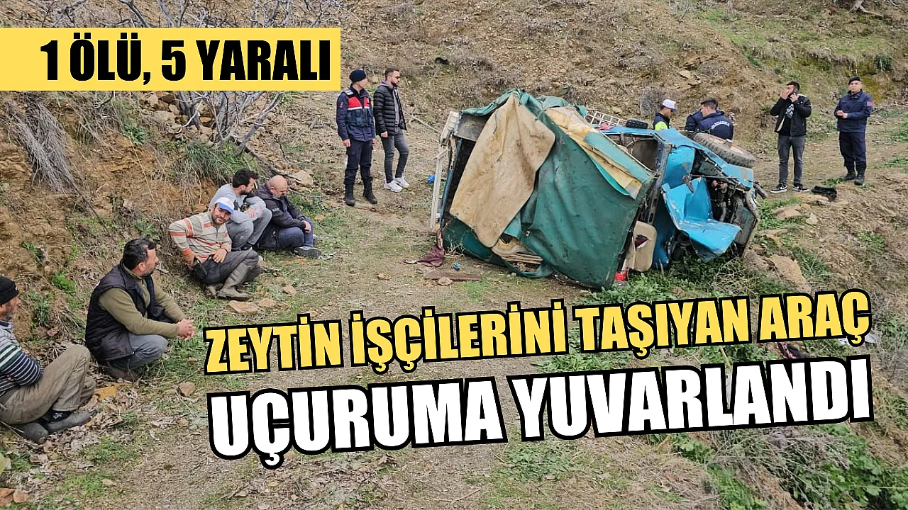 Zeytin toplamaya giden işçilerin olduğu araç uçuruma yuvarlanırken, kazada 1 kişi olay yerinde hayatını kaybetti, biri ağır 4 kişi de yaralandı.