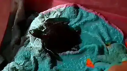 Datça ilçesinde zift içinde bulunan yavru yeşil deniz kaplumbağası, Deniz Kaplumbağaları Araştırma Kurtarma ve Rehabilitasyon Merkezinde (DEKAMER) tedavi altına alındı.