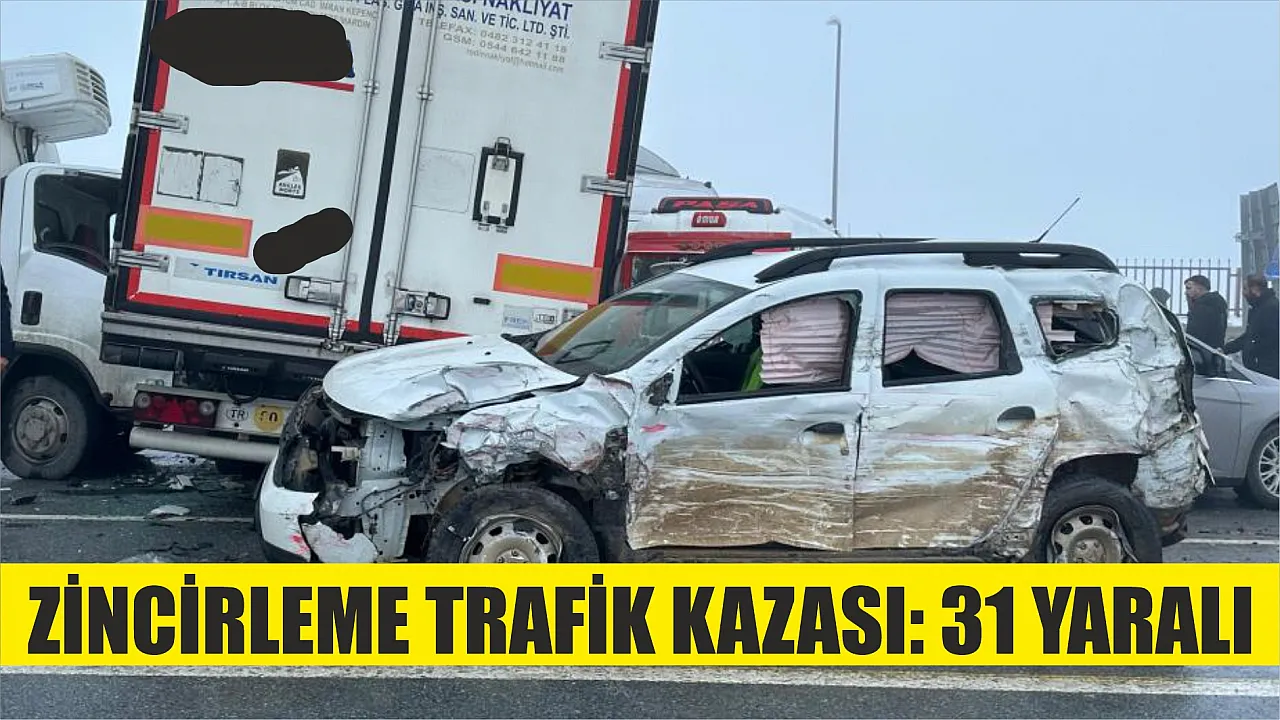 Dün geceden bu yana yoğun sis ve buzlanmanın etkili olduğu bölgede sabah saatlerinde tır, yolcu minibüsü, şehiriçi minibüs ve çok sayıda otomobilin karıştığı zincirleme trafik kazası yaşandı, 31 kişi yaralandı.